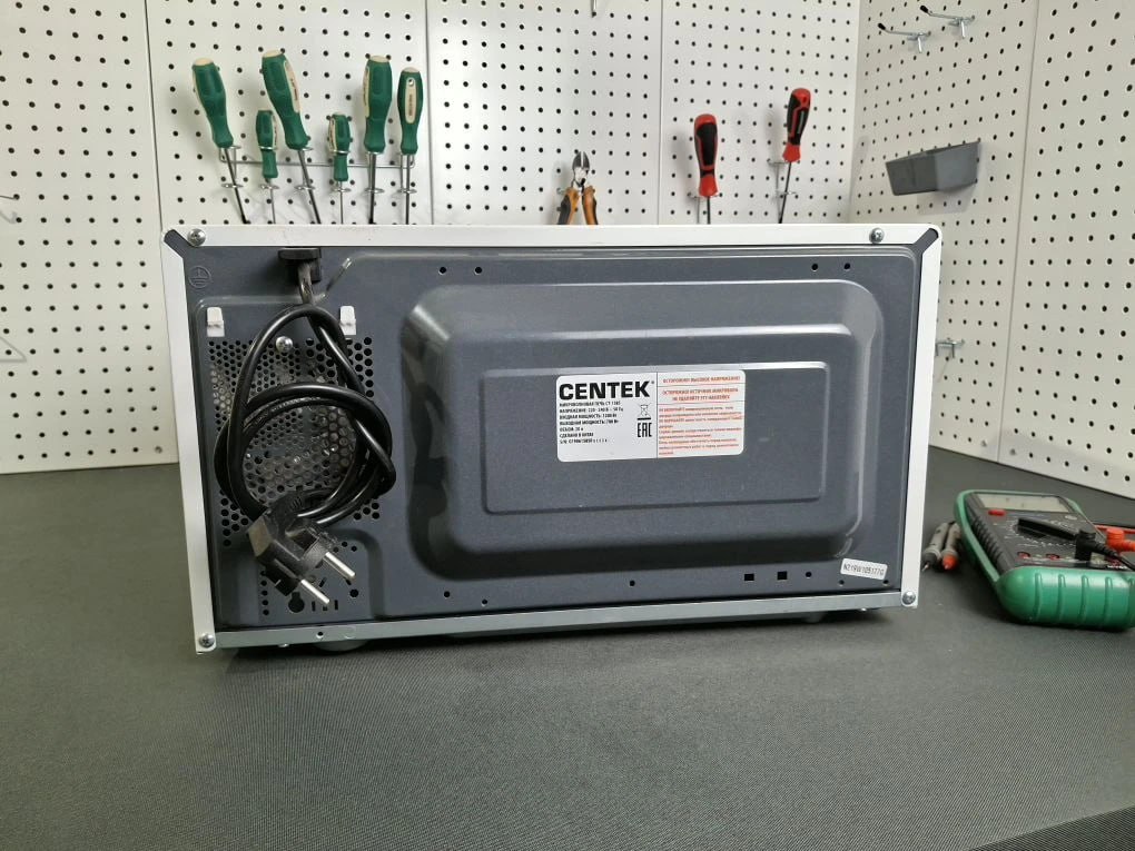 После сборки устройства последовал этап контрольного тестирования. Микроволновка Centek CT-1585 была подключена к сети и проверена в основных режимах работы. Инженеры убедились, что панель управления отображает информацию корректно, кнопки реагируют мгновенно, магнетрон создает СВЧ-излучение для нагрева. Проверена работа вентилятора охлаждения и двигателя поворотного стола. Только после успешного прохождения тестов устройство признано исправным. Результат работ превзошел ожидания заказчика. Печь работает как новая, без сбоев. Клиент получил технику и официальную гарантию на выполненные работы и замененные компоненты в нашем сервисном центре бытовых приборов.
