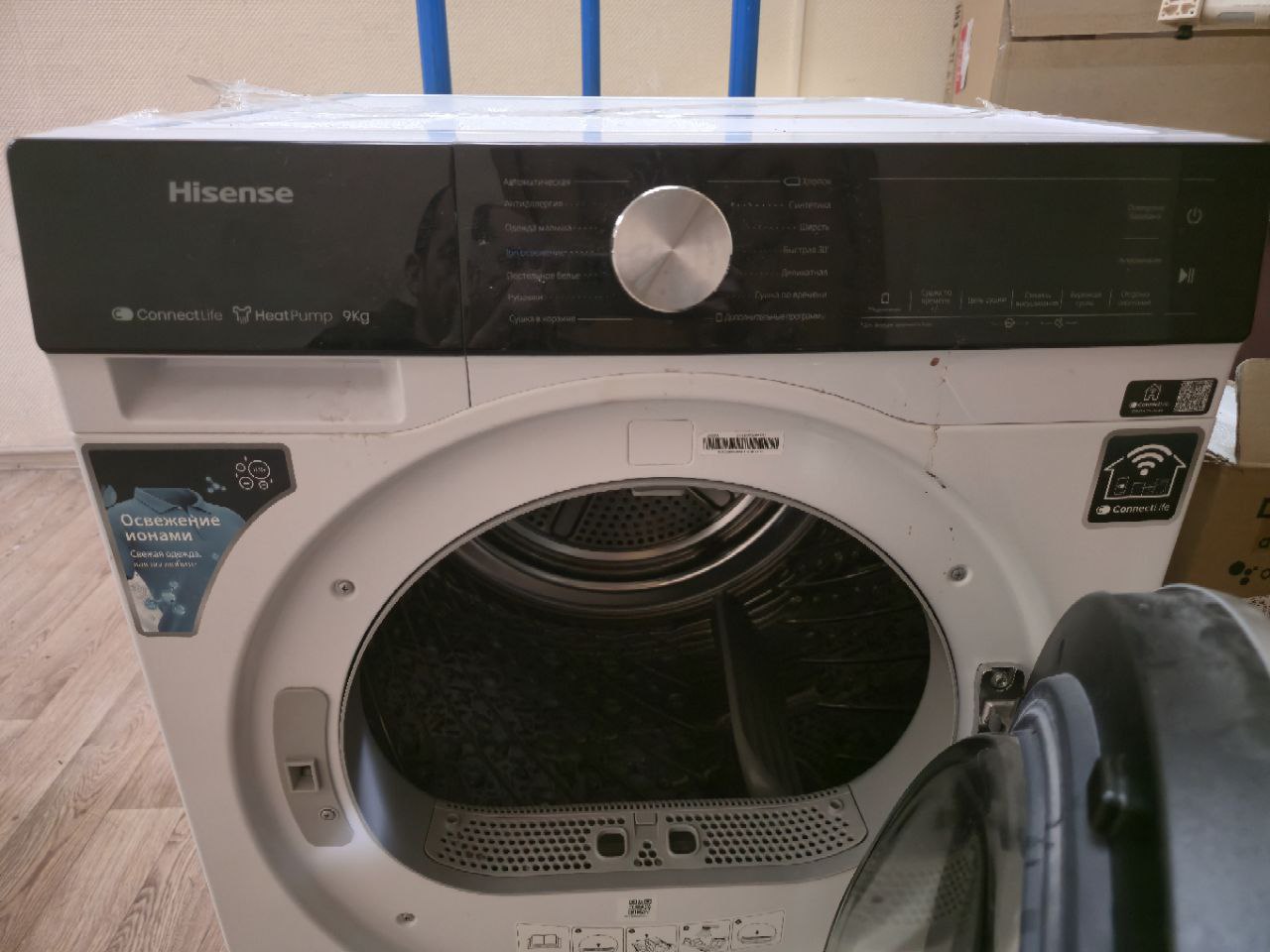 В результате выполненных работ сушильная машина Hisense DH5S902BW полностью восстановила работоспособность. Устройство уверенно включается, корректно реагирует на команды пользователя, все программы сушки запускаются и отрабатывают без ошибок. Клиенту были даны рекомендации по использованию стабилизатора напряжения для защиты электроники сушильной машины Hisense DH5S902BW в дальнейшем.